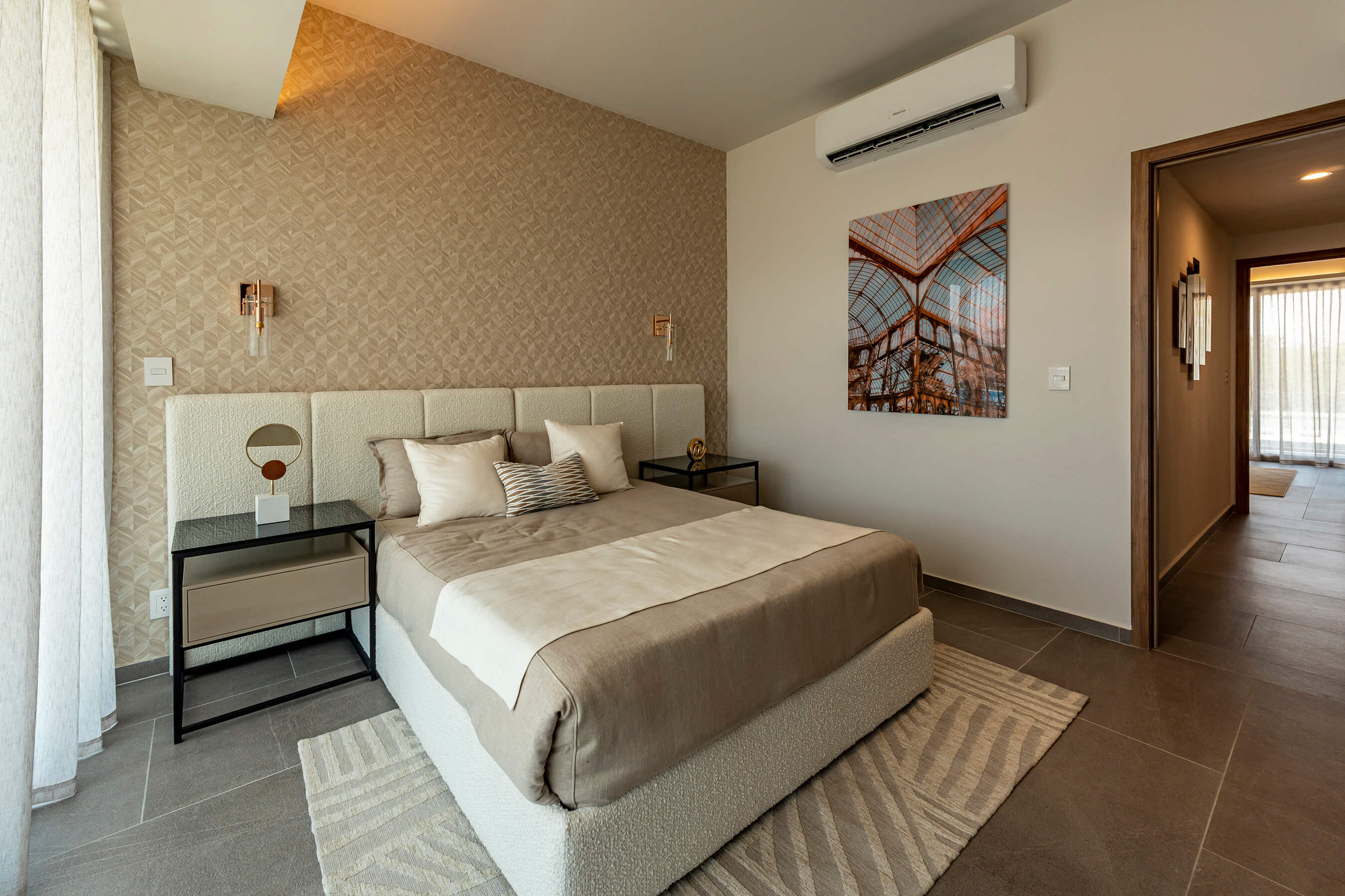 - Master bedroom with full bathroom, walk-in closet and access to the balcony.